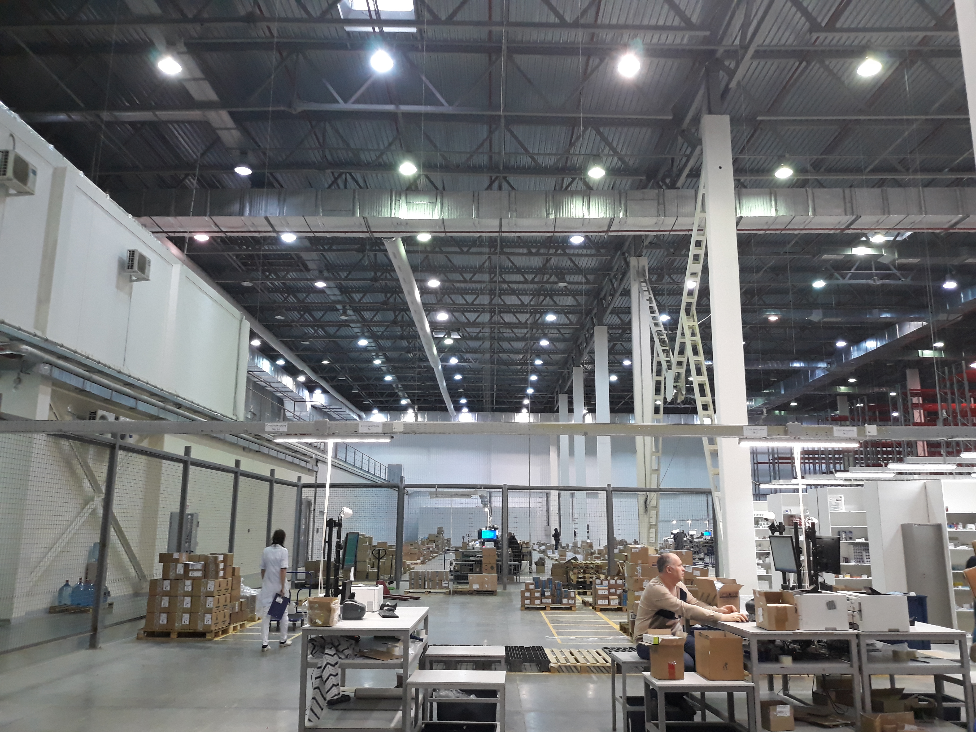 Адрес: г. Подольск, ул.Вишневая. Большой новый склад. Были установлены ДРЛ 400 Вт. Очень большой расход на обслуживание и электроэнергию.