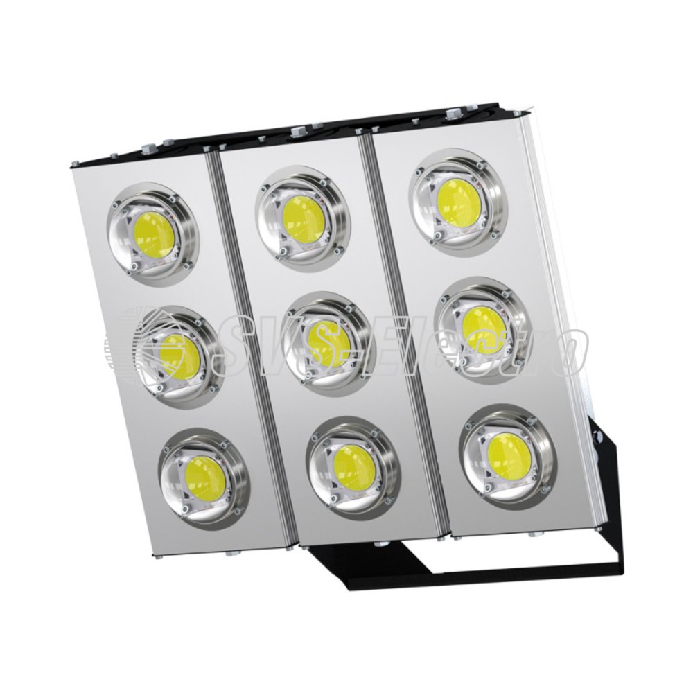 Уличные светодиодные прожекторы «SVS Prom Plazma-2» предназначены для освещения строительных площадок, стадионов, парковок гипер маркетов, открытых складов и других площадок, требующих освещения с высоких опор. Конструкция светильника модульная — возможна комплектация от 2 до 5модулей в одном светильнике. Предусмотрена возможность индивидуальной регулировки поворота каждого модуля светильника. Рекомендуемая высота установки 5–30 м. Универсальный кронштейн позволит установить прожектор на любую поверхность. Комплектуется светодиодными линзами на выбор: 45°, 60°, 90°, 120°, 140×85°, 130×30°. Подойдёт для замены устаревших светильников слампами ДНаТ 400-4000.
