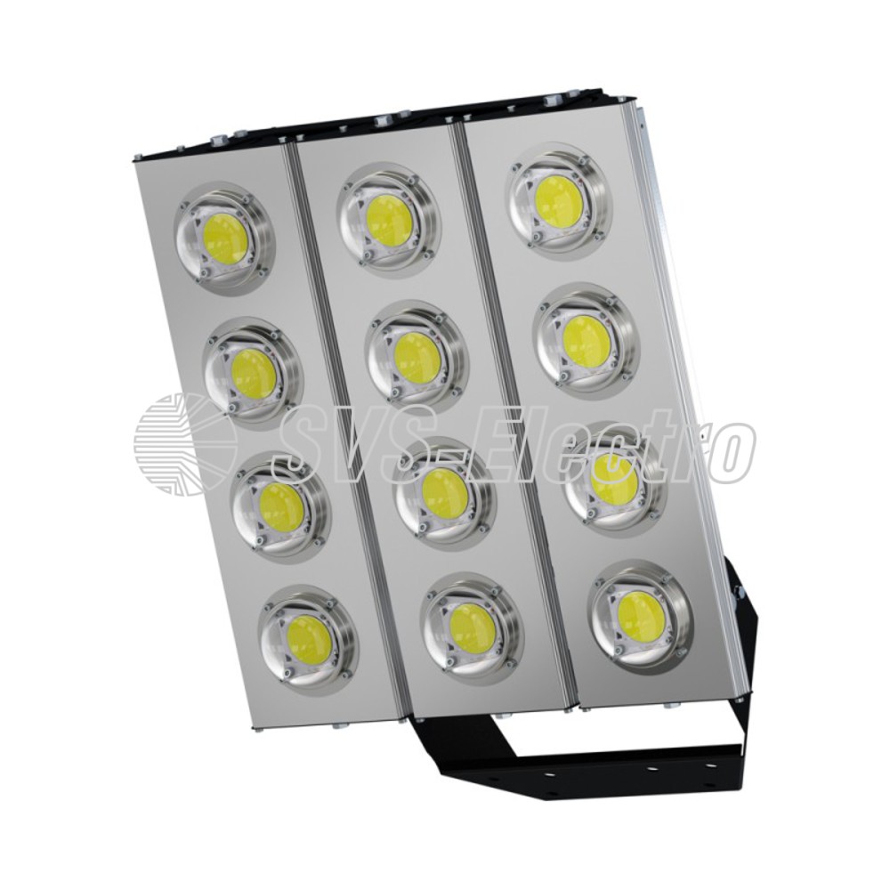 Уличные светодиодные прожекторы «SVS Prom Plazma-2» предназначены для освещения строительных площадок, стадионов, парковок гипер маркетов, открытых складов и других площадок, требующих освещения с высоких опор. Конструкция светильника модульная — возможна комплектация от 2 до 5модулей в одном светильнике. Предусмотрена возможность индивидуальной регулировки поворота каждого модуля светильника. Рекомендуемая высота установки 5–30 м. Универсальный кронштейн позволит установить прожектор на любую поверхность. Комплектуется светодиодными линзами на выбор: 45°, 60°, 90°, 120°, 140×85°, 130×30°. Подойдёт для замены устаревших светильников слампами ДНаТ 400-4000.